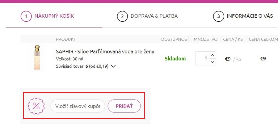 Zľavový kupón využijete v košíku obchodu.