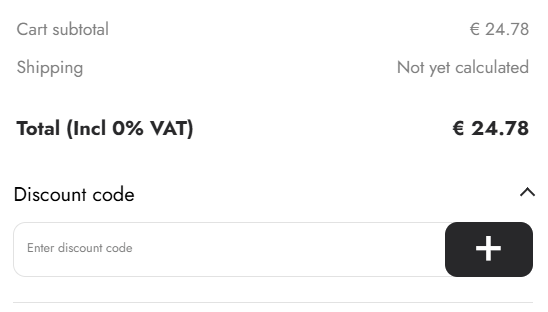 Do políčka „Discount code“ vložte kupón, kliknite na „+“ a máte hotovo.