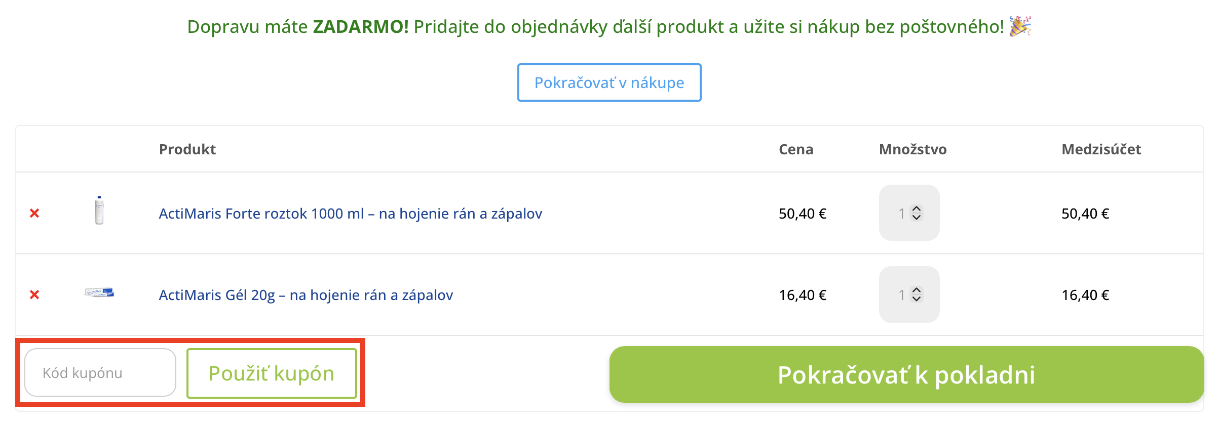 Nakupujte produkty na actimaris.sk a získajte dopravu zdarma pri nákupe nad 50 €.