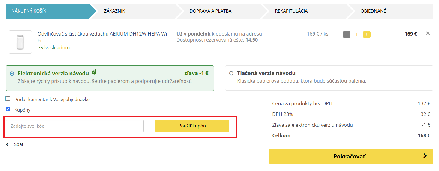 Zľavový kupón využijete v košíku obchodu.