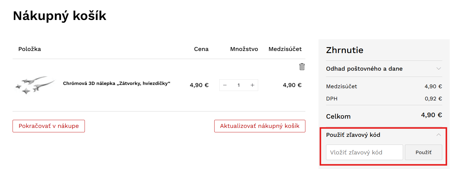 Do políčka „Vložiť zľavový kód“ vložte kupón, kliknite na „Použiť“ a máte hotovo.