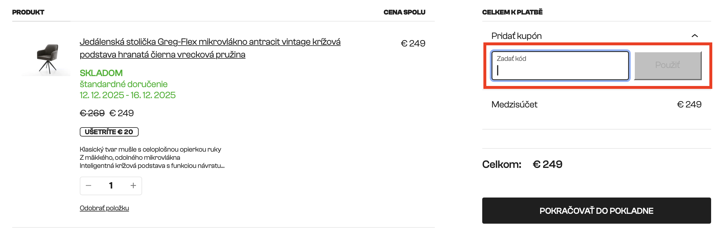 Zľavový kód Delife využijete v košíku. Platí aj na zľavnené produkty.