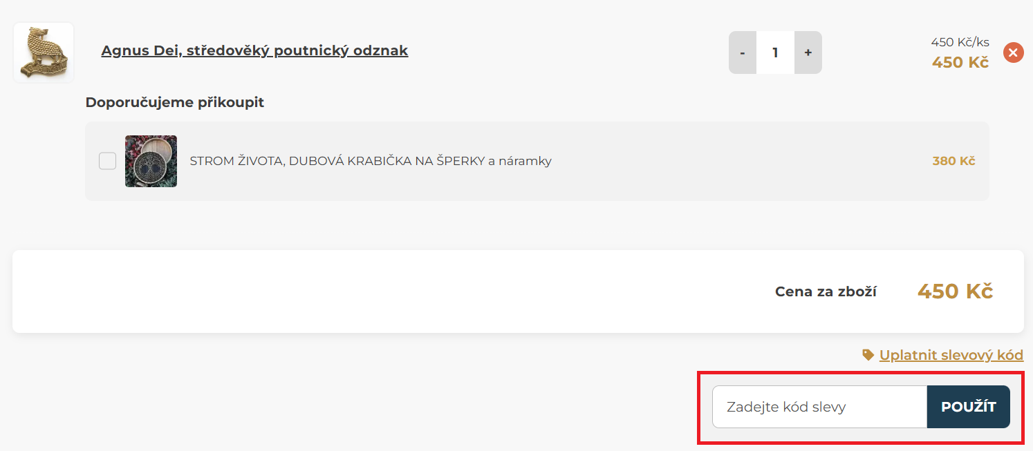 V e-shope si vyberte produkty, ktoré si chcete kúpiť a vložte ich do košíka. V košíku nájdite políčko „Zadejte kód slevy“ na zadanie zľavového kódu. Tam vložte kód z Tipli a kliknite na „Použít“. Teraz už stačí dokončiť objednávku a máte hotovo. Môžete čakať balíček.