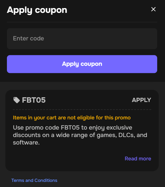 Do políčka „Enter code“ skopírujte kód a kliknite na „Apply coupon“.