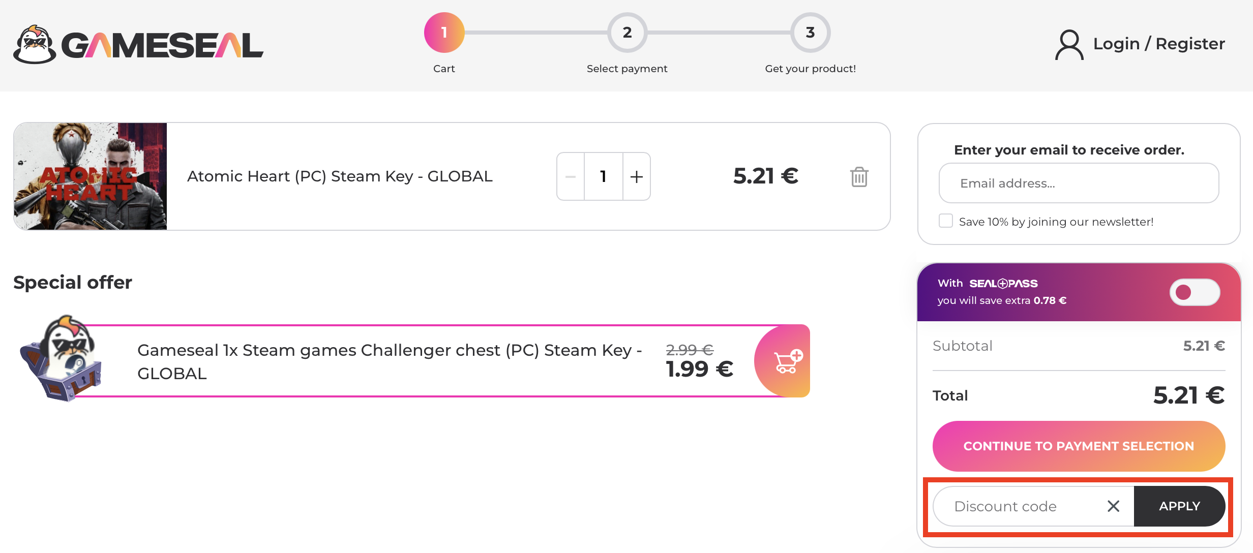 Vyberte si najlepší GameSeal zľavový kód (celú aktuálnu ponuku nájdete vyššie), ktorý by ste chceli uplatniť.