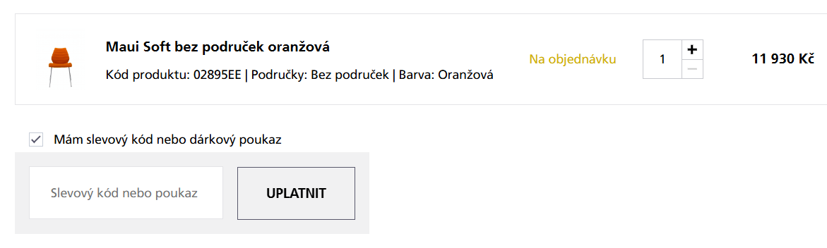 Do políčka „Slevový kód nebo poukaz“ vložte kupón, kliknite na „Uplatnit“ a máte hotovo.
