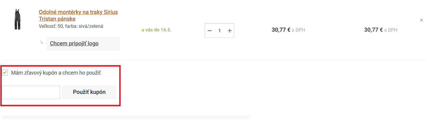 V e-shope si vyberte produkty, ktoré si chcete kúpiť a vložte ich do košíka. V košíku nájdite políčko „Mám zľavový kód a chcem ho použiť“ na zadanie zľavového kódu. Tam vložte kód z Tipli a kliknite na „Použiť kupón“. Teraz už stačí dokončiť objednávku a máte hotovo. Môžete čakať balíček.