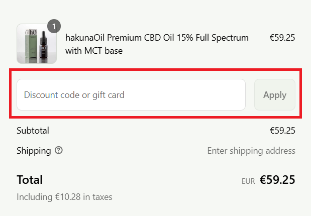 V e-shope si vyberte produkty, ktoré si chcete kúpiť a vložte ich do košíka. V košíku nájdite políčko „Discount code or gift card“ na zadanie zľavového kódu. Tam vložte kód z Tipli a kliknite na „Apply“. Teraz už stačí dokončiť objednávku a máte hotovo. Môžete čakať balíček.