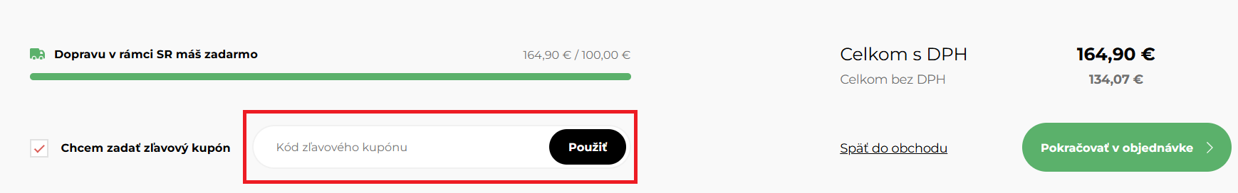 V e-shope si vyberte produkty, ktoré si chcete kúpiť a vložte ich do košíka. V košíku nájdite políčko „Kód zľavového kupónu“ na zadanie zľavového kódu. Tam vložte kód z Tipli a kliknite na „Použiť“. Teraz už stačí dokončiť objednávku a máte hotovo. Môžete čakať balíček.