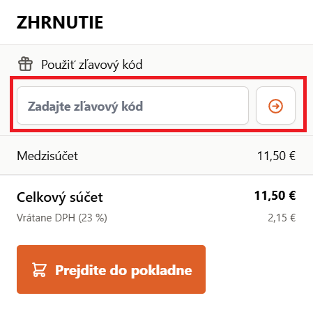 V e-shope si vyberte produkty, ktoré si chcete kúpiť a vložte ich do košíka. V košíku nájdite políčko „Zadajte zľavový kód“ na zadanie zľavového kódu. Tam vložte kód z Tipli a kliknite na šípku vedľa. Teraz už stačí dokončiť objednávku a máte hotovo. Môžete čakať balíček.