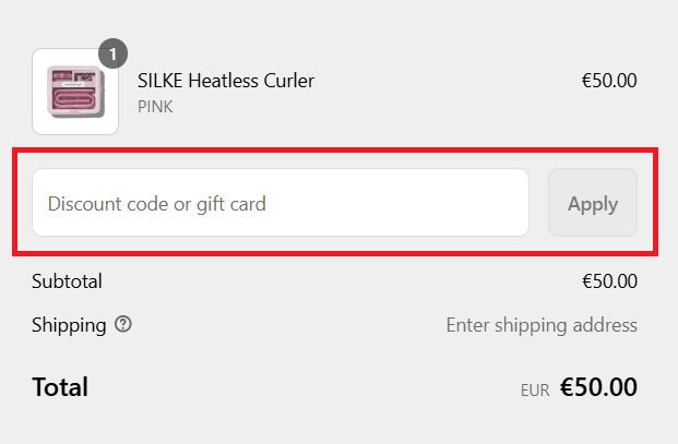 V e-shope si vyberte produkty, ktoré si chcete kúpiť a vložte ich do košíka. V košíku nájdite políčko „Discount code or gift card“ na zadanie zľavového kódu. Tam vložte kód z Tipli a kliknite na „Apply“. Teraz už stačí dokončiť objednávku a máte hotovo. Môžete čakať balíček.